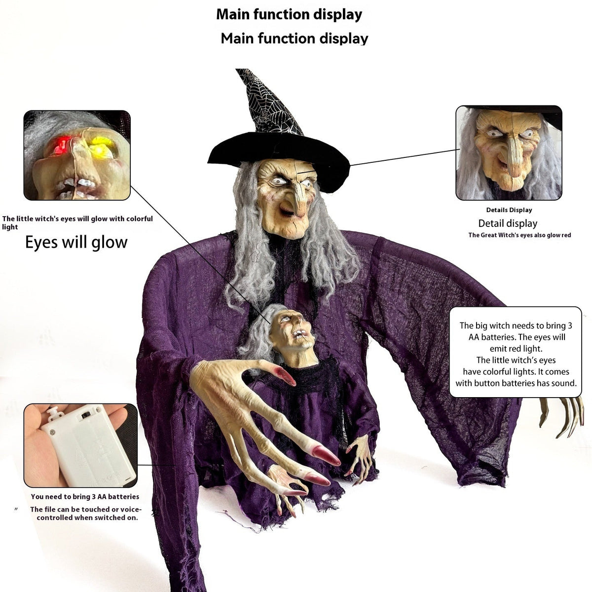 Inform when this item available Halloween Parent-child Witch Ornaments Floor Outlet Luminous